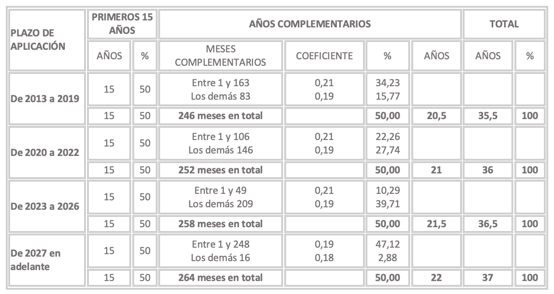 Antes de la reforma de 2013, se consideraban las cotizaciones de los 15 años anteriores (180 meses). Desde entonces, se alargó este periodo para el cálculo a los 25 años. Esto se fue llevando a cabo progresivamente año tras año, hasta el año 2022. Desde ese momento el cálculo se comenzó a realizar sobre los últimos 25 años (300 meses).