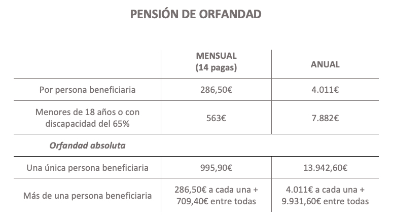 • Orfandad. Las pensiones de orfandad también subirán un 2,7%; no obstante, las prestaciones de orfandad causadas por violencia contra la mujer, que no se consideran pensión, se actualizarán según el salario mínimo interprofesional.