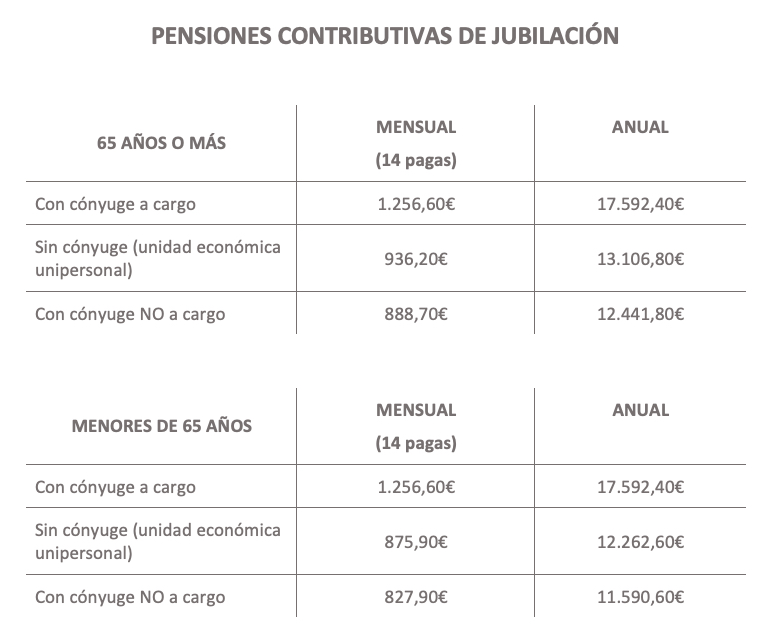 Las pensiones contributivas son las siguientes: