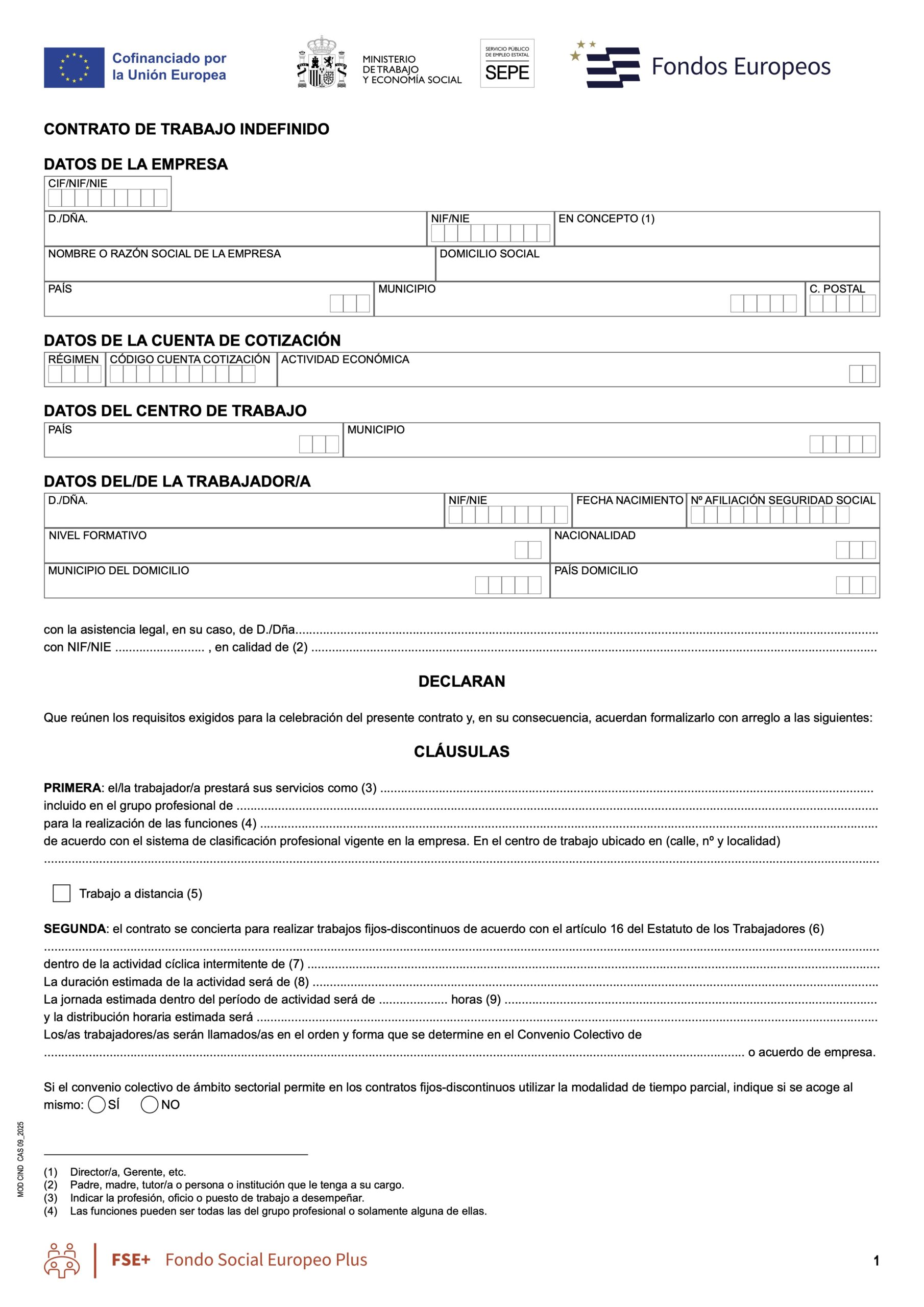 Contrato fijo-discontinuo: este tipo de contrato está regulado en el artículo 16 del Estatuto de los Trabajadores. Se trata de un contrato indefinido, pero solo se trabaja temporalmente. Es decir, se trabaja durante una temporada concreta al año y en el tiempo restante, aunque la relación laboral continúe, queda en suspenso, hasta que se vuelve a llamar a la trabajadora o trabajador.