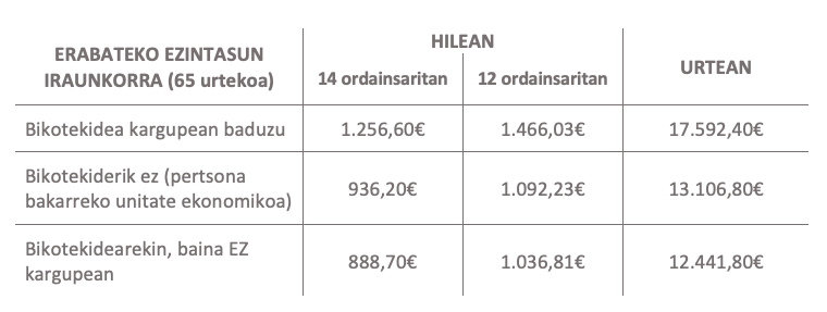 Osagarri honen zenbatekoa: 525€ urtean. Kopuru benetan murritz eta iraingarria, are iraingarriagoa, kontuan hartzen badugu 2010etik ez dela euro bakar batean igo, alokairuek gora egiteari uzten ez dioten bitartean.