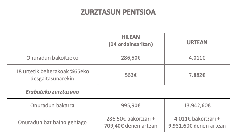 Ezer baino lehen, parentesi garrantzitsu bat: Euskal Herriko Pentsiodunen Mugimenduak ez du etsitzen bere borrokan gutxieneko pentsioak lanbidearteko gutxieneko soldatarekin pareka daitezen. Pertsona guztiei diru-sarrera nahikoak bermatu behar zaizkie, gure herriko langile guztiak, aktiboan egon ala ez, bizi baldintza duinak izan ditzaten. Honetarako, 2025ean herri ekimen legegilea aurkeztu zuten Legebiltzarrean, 145.142 sinaduren babesarekin. Jaurlaritzak pentsio hauek osa ditzala eskatzen zen bertan, baina Legebiltzarrak baztertu egin zuen. Ahoa autogobernuarekin betetzen zaie, baina autogobernu hau jendearen bizitzak hobetzeko erabili ahal dutenean, PNV Estatuko eskumenen atzean ezkutatzen da.